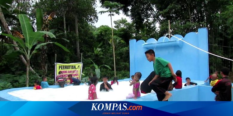 Kolam penampungan air sumur bor itu kini berubah fungsi menjadi kolam renang dadakan.
