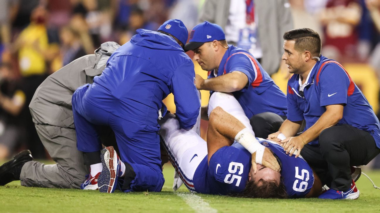 New York Giants' Nick Gates still in hospital after fracturing leg, has more procedures coming in future - ESPN